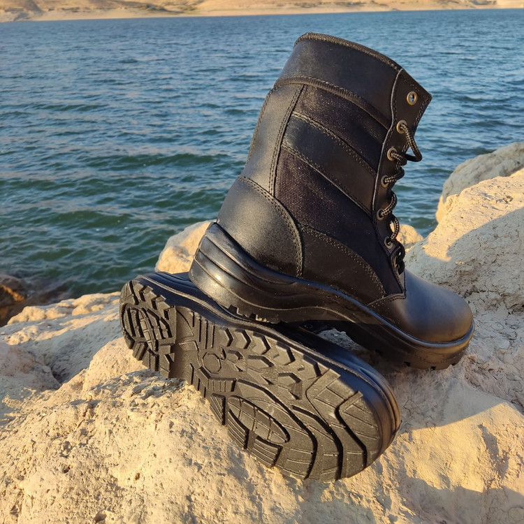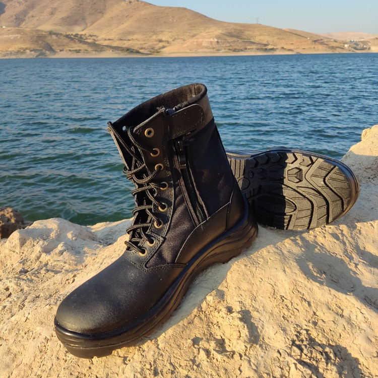 پوتین چرم مشکی کوهنوردی و نظامی زیپ دار