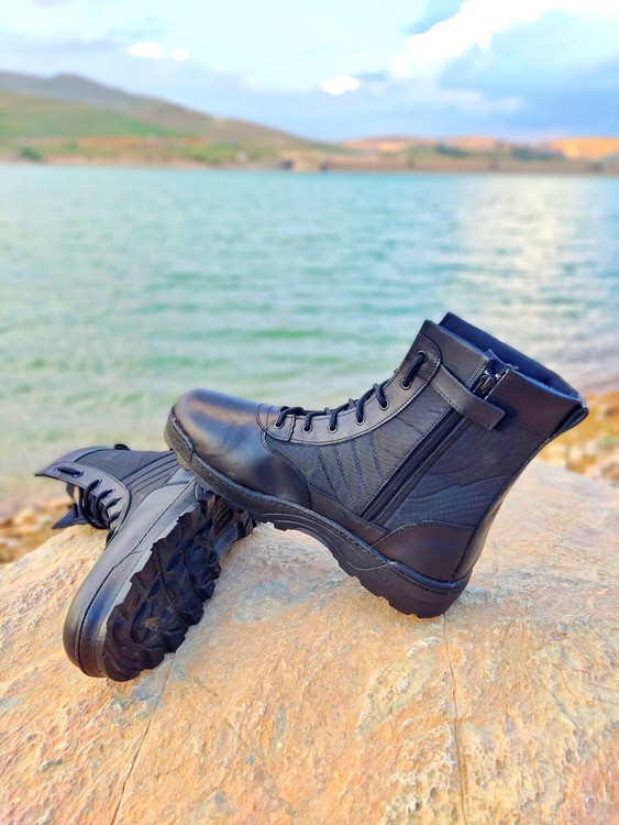 پوتین چرم مشکی کوهنوردی و نظامی زیپ دار